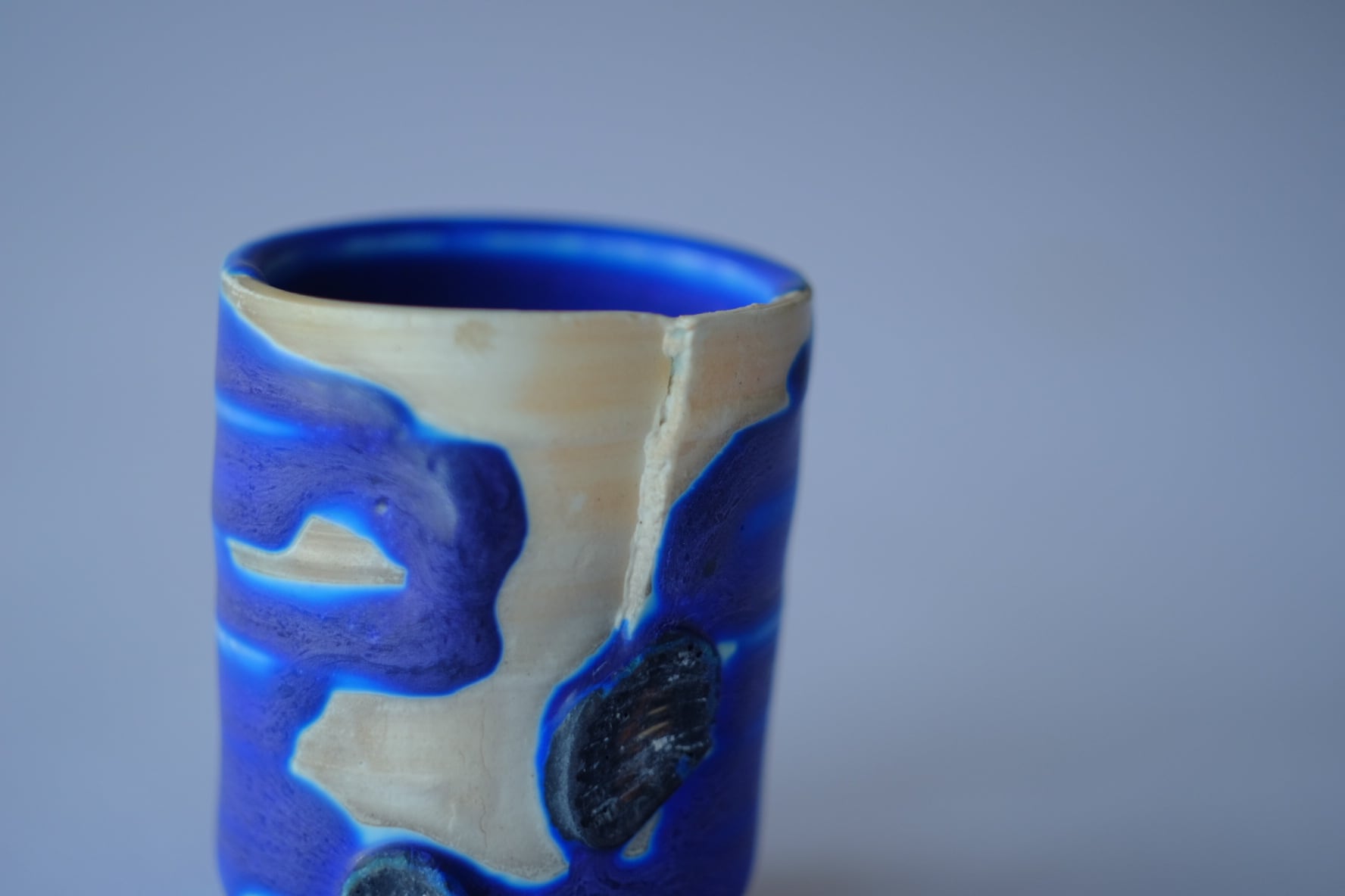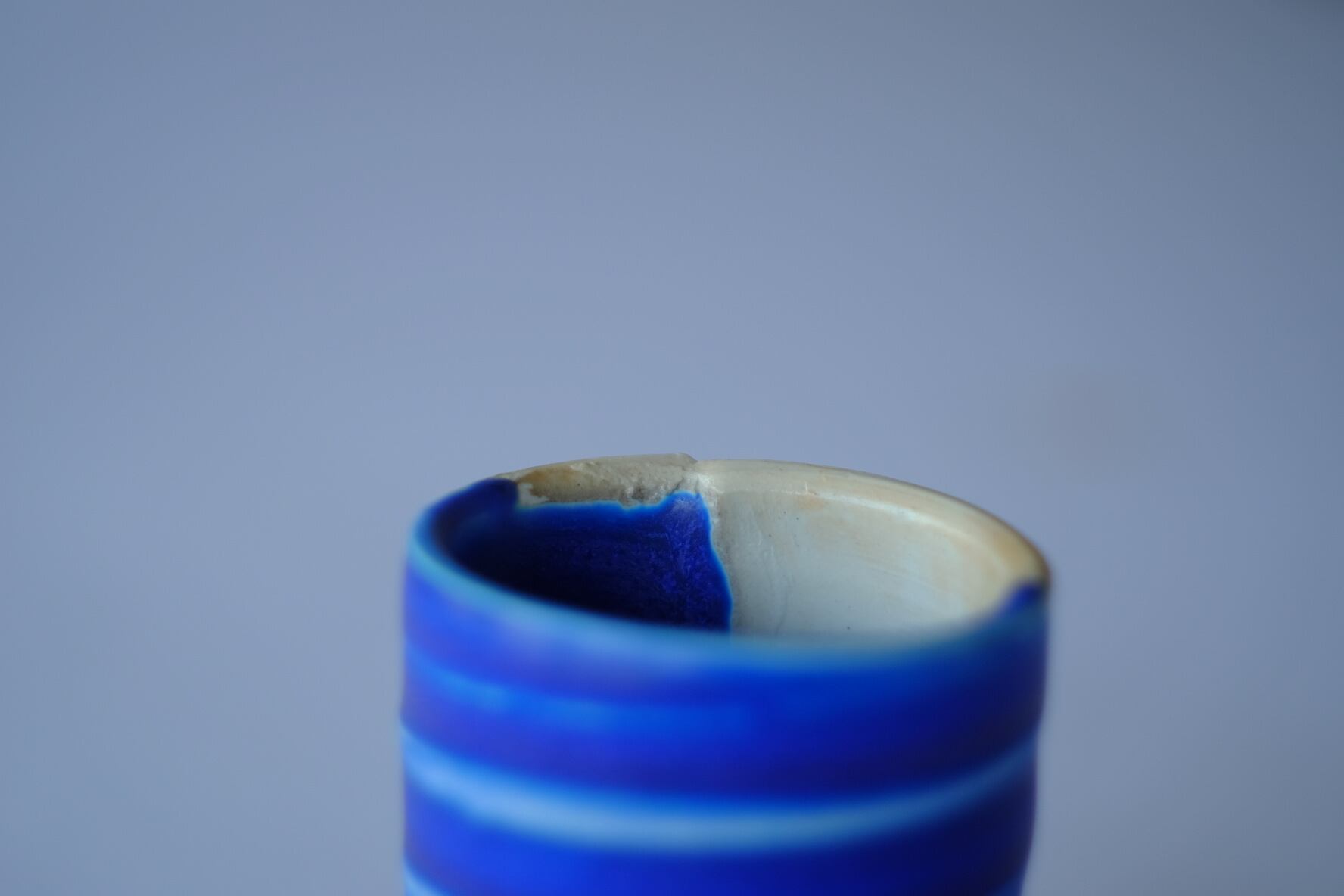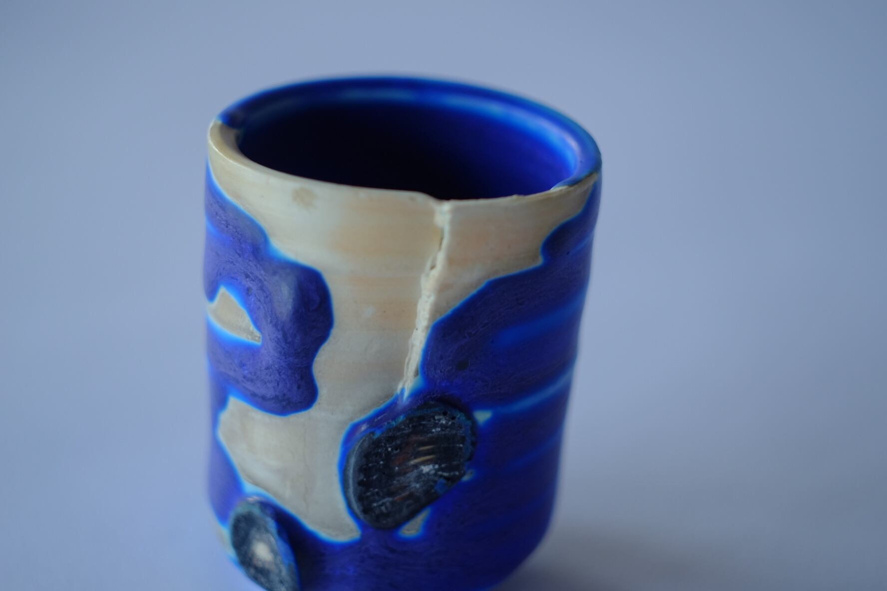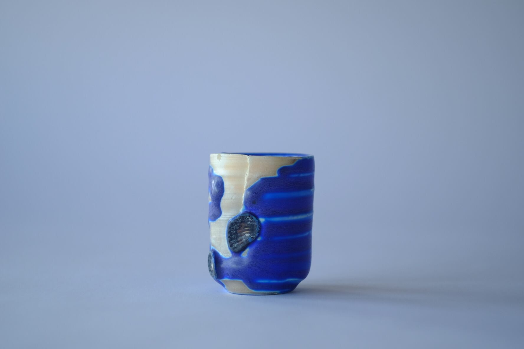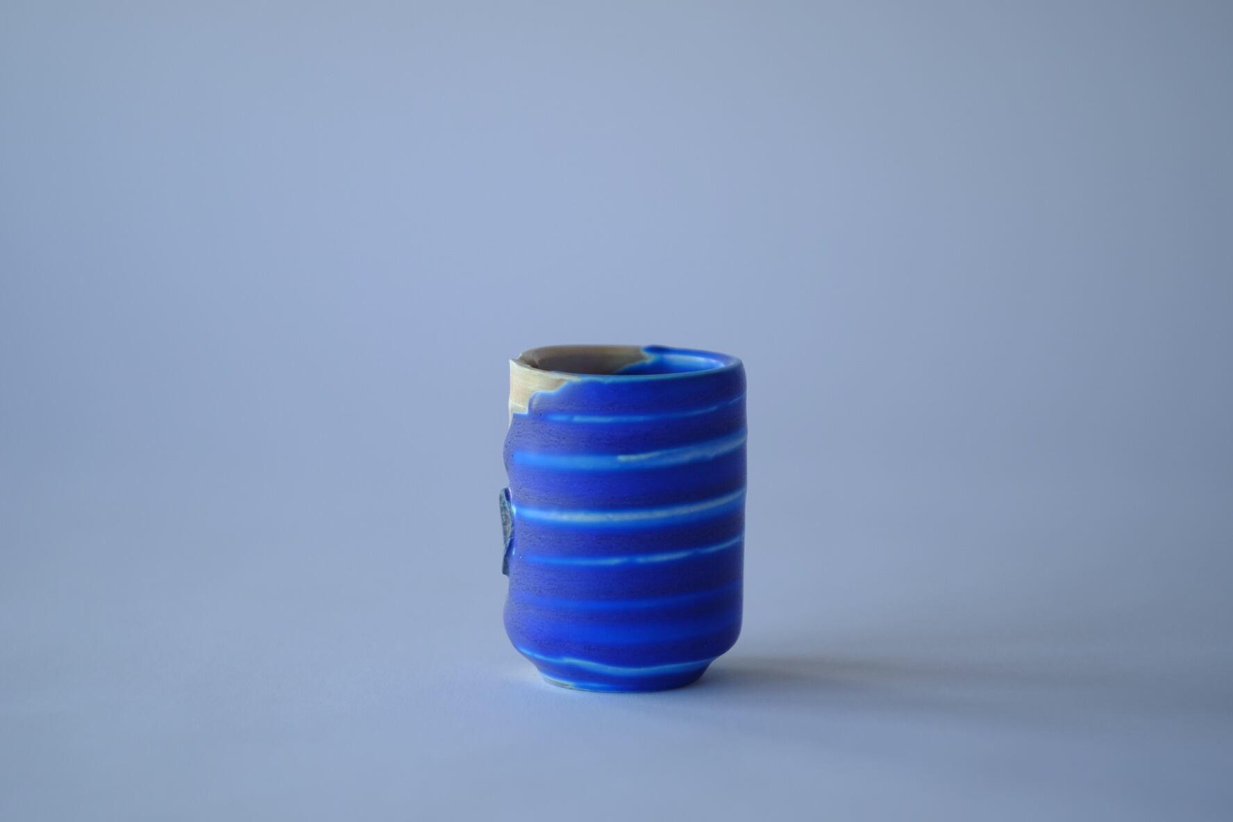 乾燥前の生地に切り込みを入れ、口をずらした遊び心ある世界で唯一無二のぐい呑みです。
